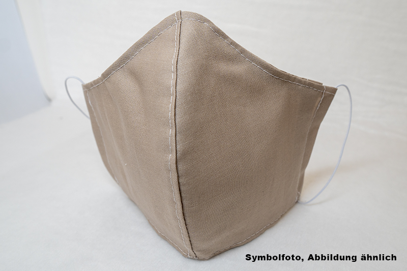 Die Maske wird aus Baumwollmaterial handgenäht und soll regelmäßig gereinigt werden. Waschbar bei 40-60° Maschinenwäsche. Die Gummibänder sind lose und können individuell an die Kopfform angepasst werden. Die Maske wird über Nasenrücken und Kinn gelegt und seitlich hinter den Ohren befestigt. Hierbei darauf achten, dass die Maske gut anliegt und möglichst keine Falten wirft.